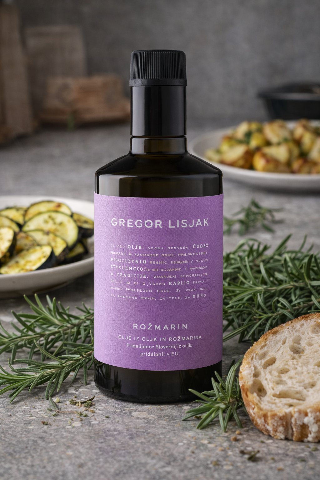 Ekstra deviško oljčno olje z rožmarinom. EKO rožmarin dodamo našemu ekstra deviškemu oljčnemu olju, pridobljenemu iz izbranih oljk.
